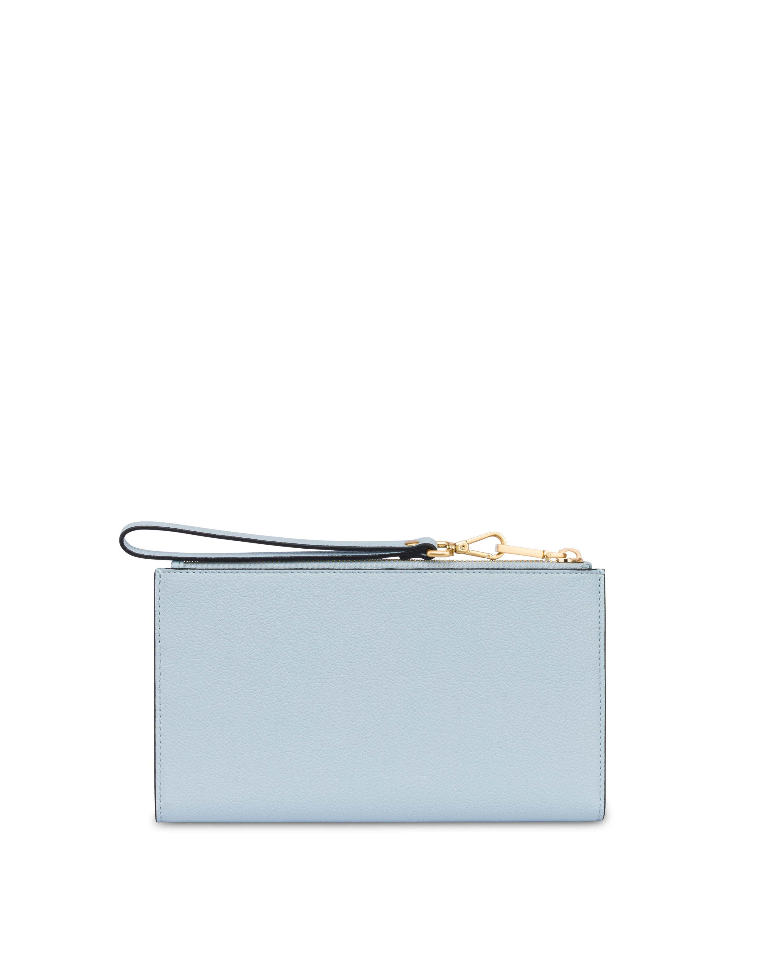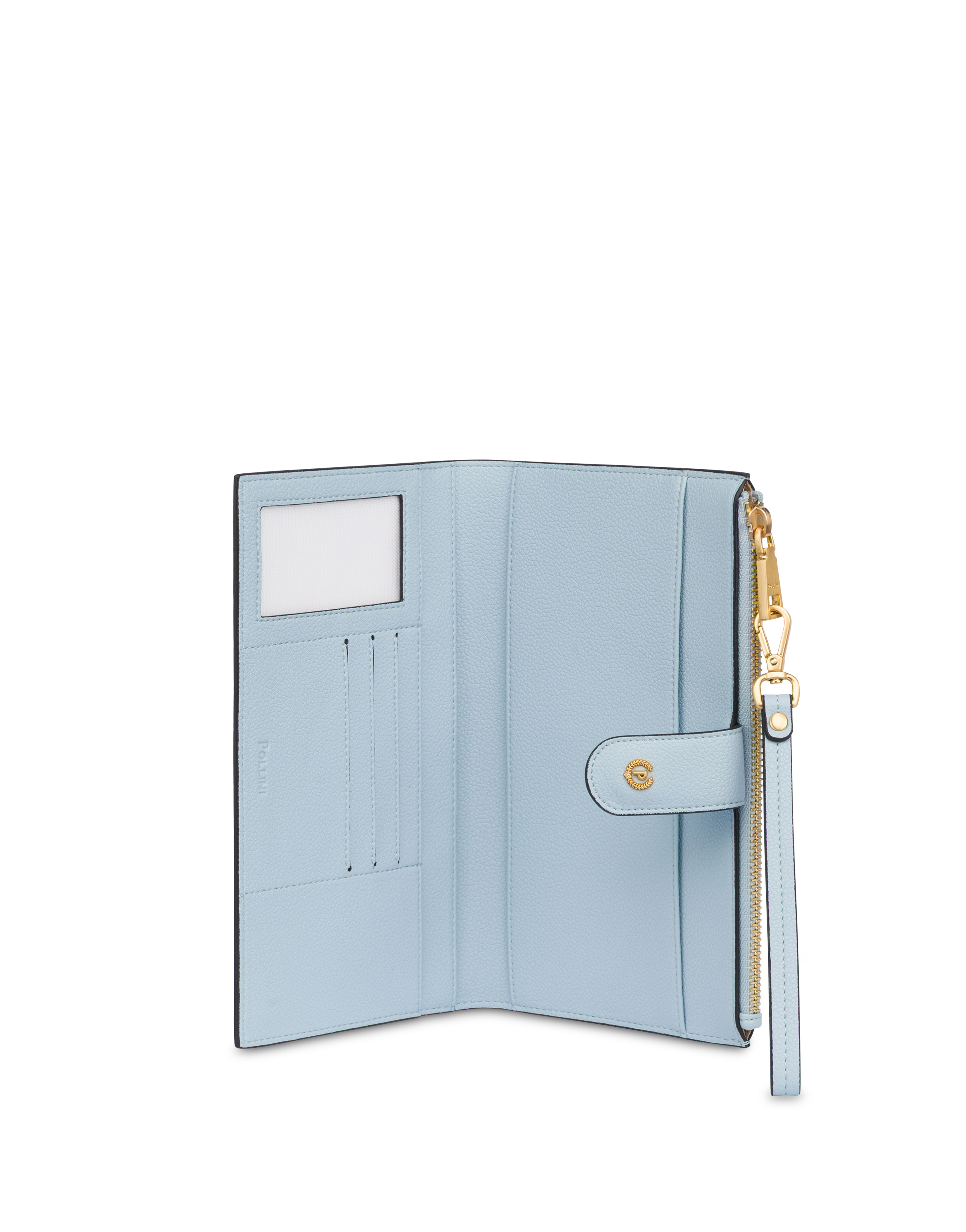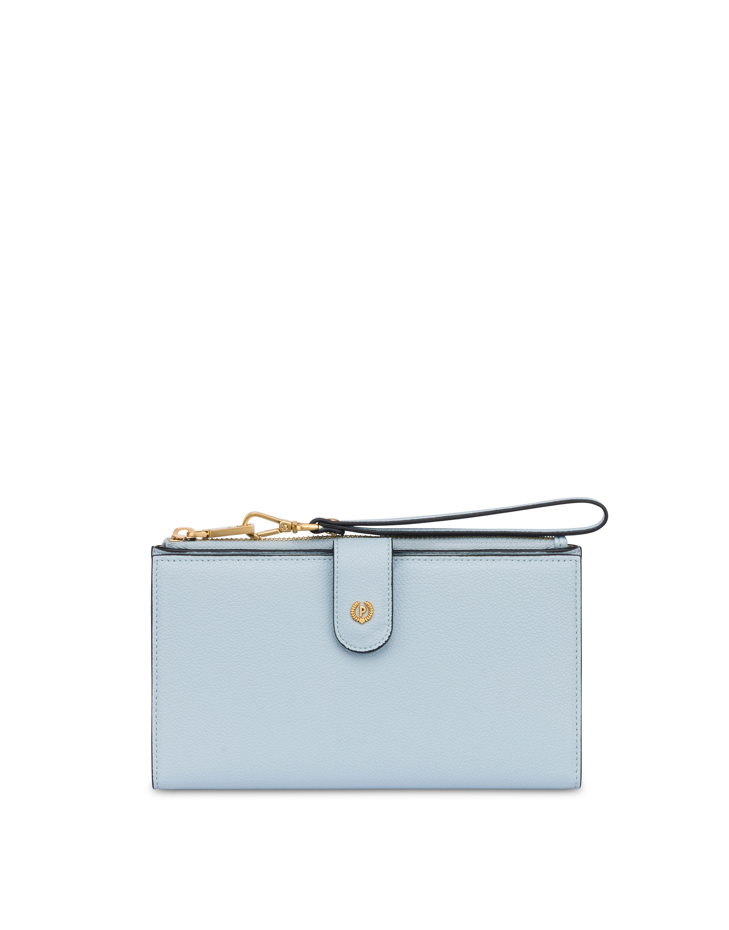 Geldbörse aus superweichem, praktischem, raffiniertem Material, dank der abnehmbaren Handgelenkschlaufe am Handgelenk tragbar. Der große zentrale Knopf mit dem Logo „P Alloro“ mit Galvanisierung in gebürstetem Gold und Light Gold setzt einen markanten, eleganten Akzent. Das Innere ist funktional und gut organisiert, mit Fächern für Karten, Geldscheine und Dokumente sowie einer Münztasche mit Reißverschluss: perfekt, um Ordnung zu halten, ohne auf Stil zu verzichten.