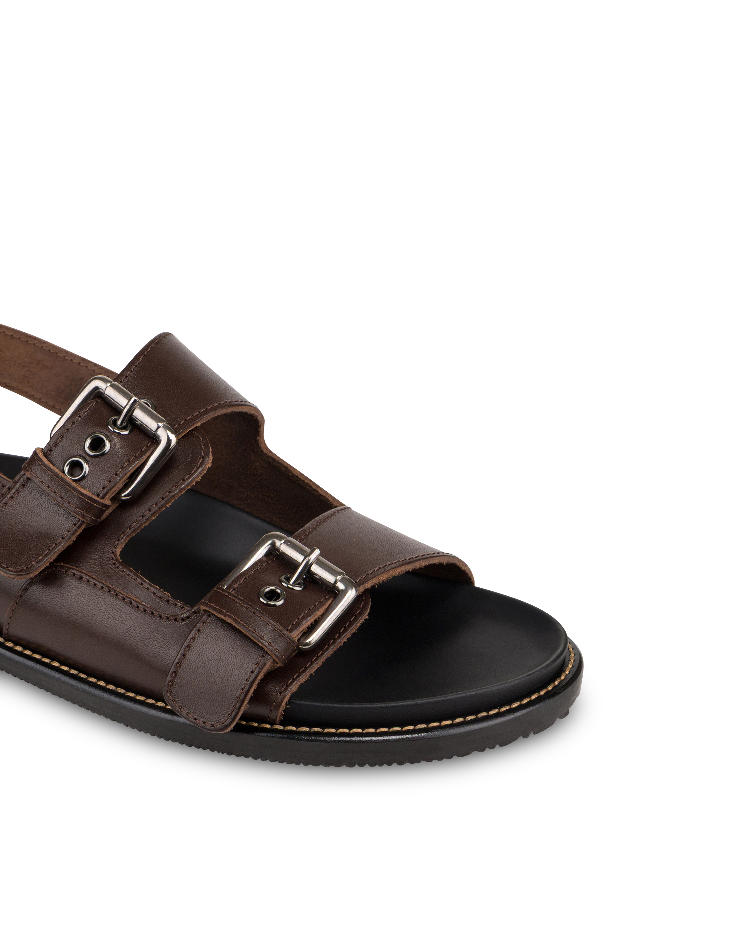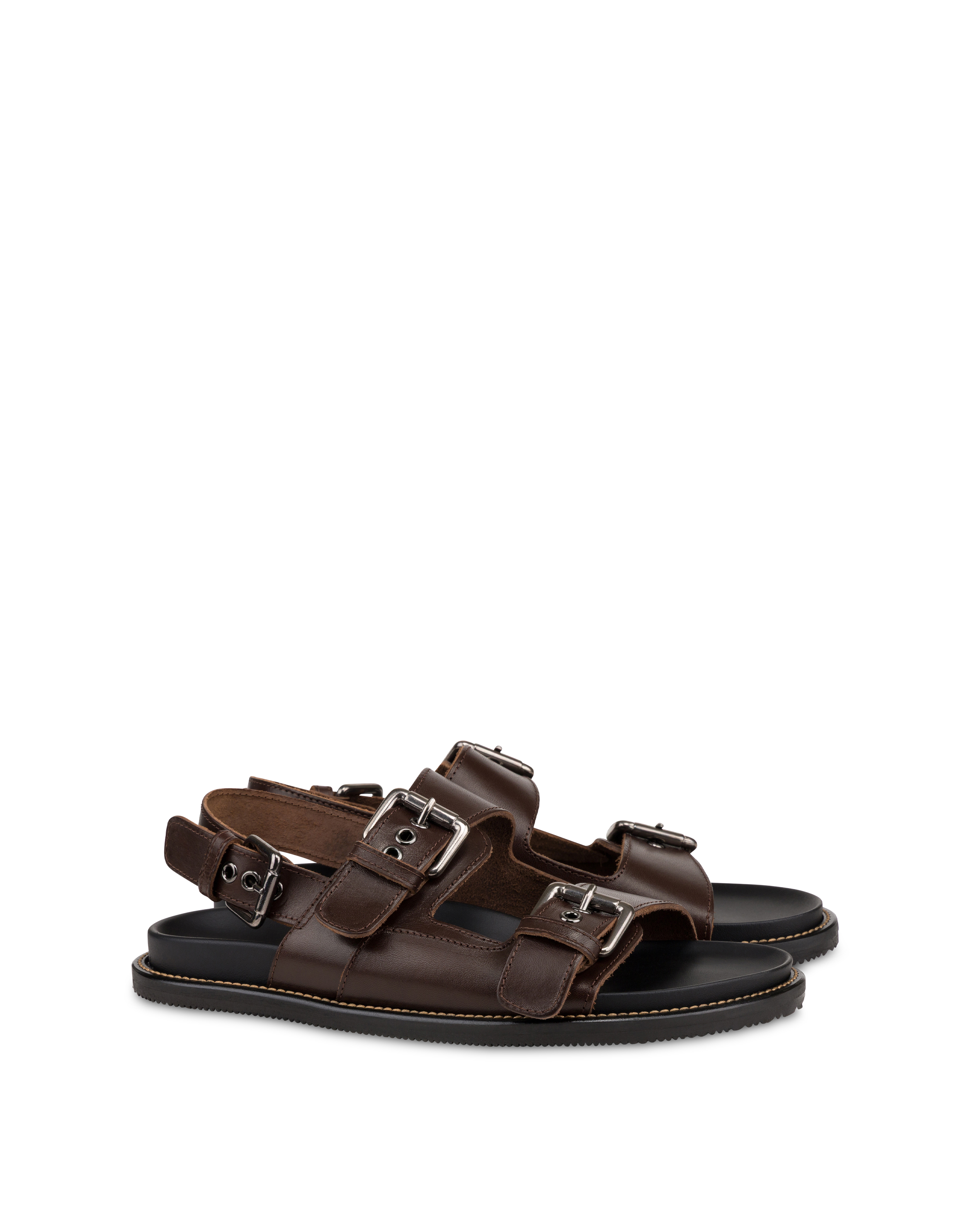 Eine leichte Sohle mit weichem Fußbett garantiert Komfort und Stabilität bei dieser raffinierten Sandale. Das Obermaterial aus Leder verfügt über gekreuzte Bänder, die den Fuß sanft umschließen, während die Riemen mit farblich abgestimmten Schnallen das Design mit schlichter Eleganz vervollständigen.