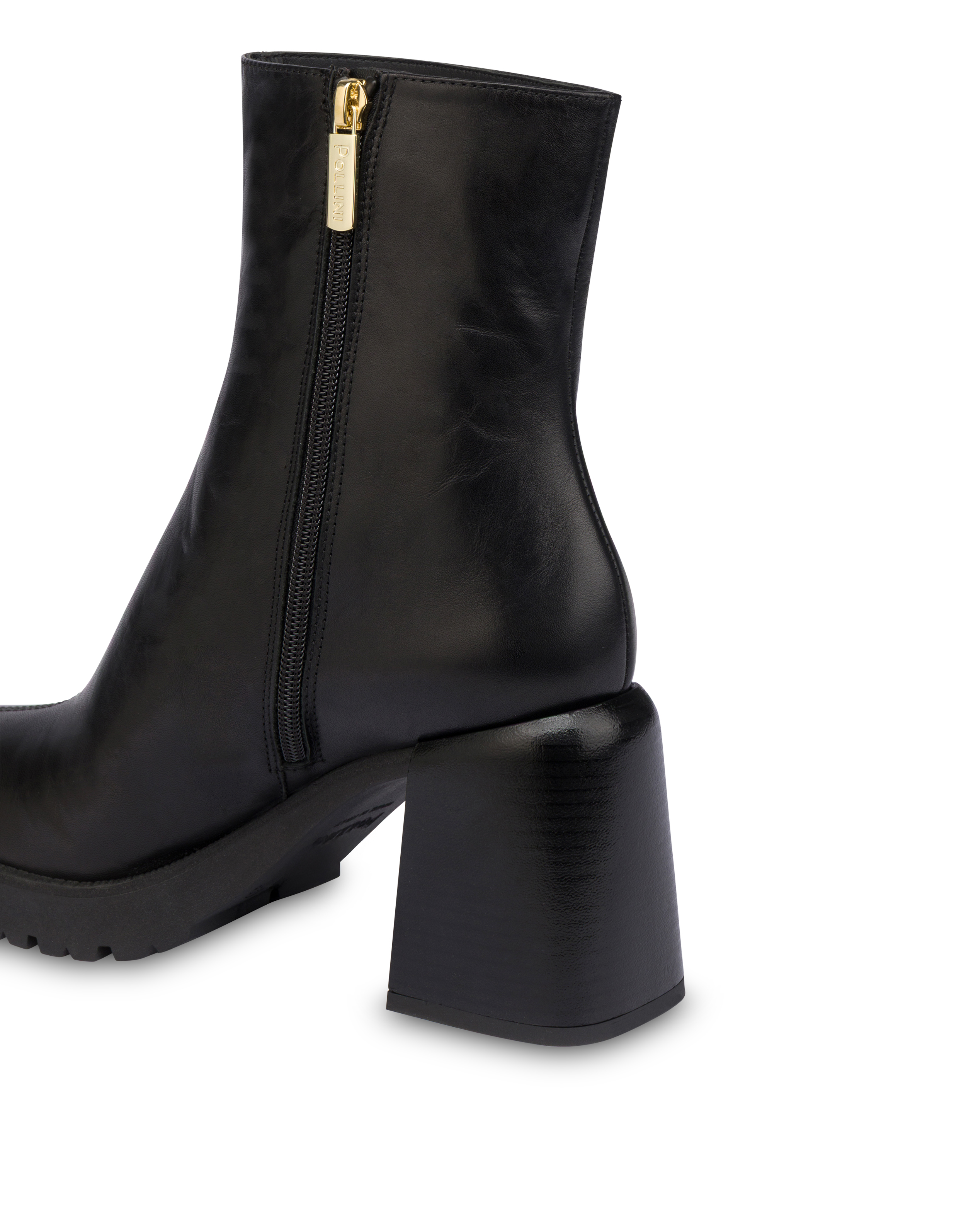 Der Stiefel Annie kombiniert Charakter und Funktionalität in einem modernen Design. Er ist aus Kalbsleder mit Antik-Effekt gefertigt und zeichnet sich durch eine Halbkarree-Kappe aus, die ihm eine markante, zeitgemäße Linie verleiht. Das Lederfutter sorgt für Komfort und Atmungsaktivität, während die Gummisohle mit Stollenprofil Grip und Widerstandsfähigkeit gewährleistet. Ein vielseitiges und unverwechselbares Modell, perfekt, um der Saison stilvoll zu begegnen.