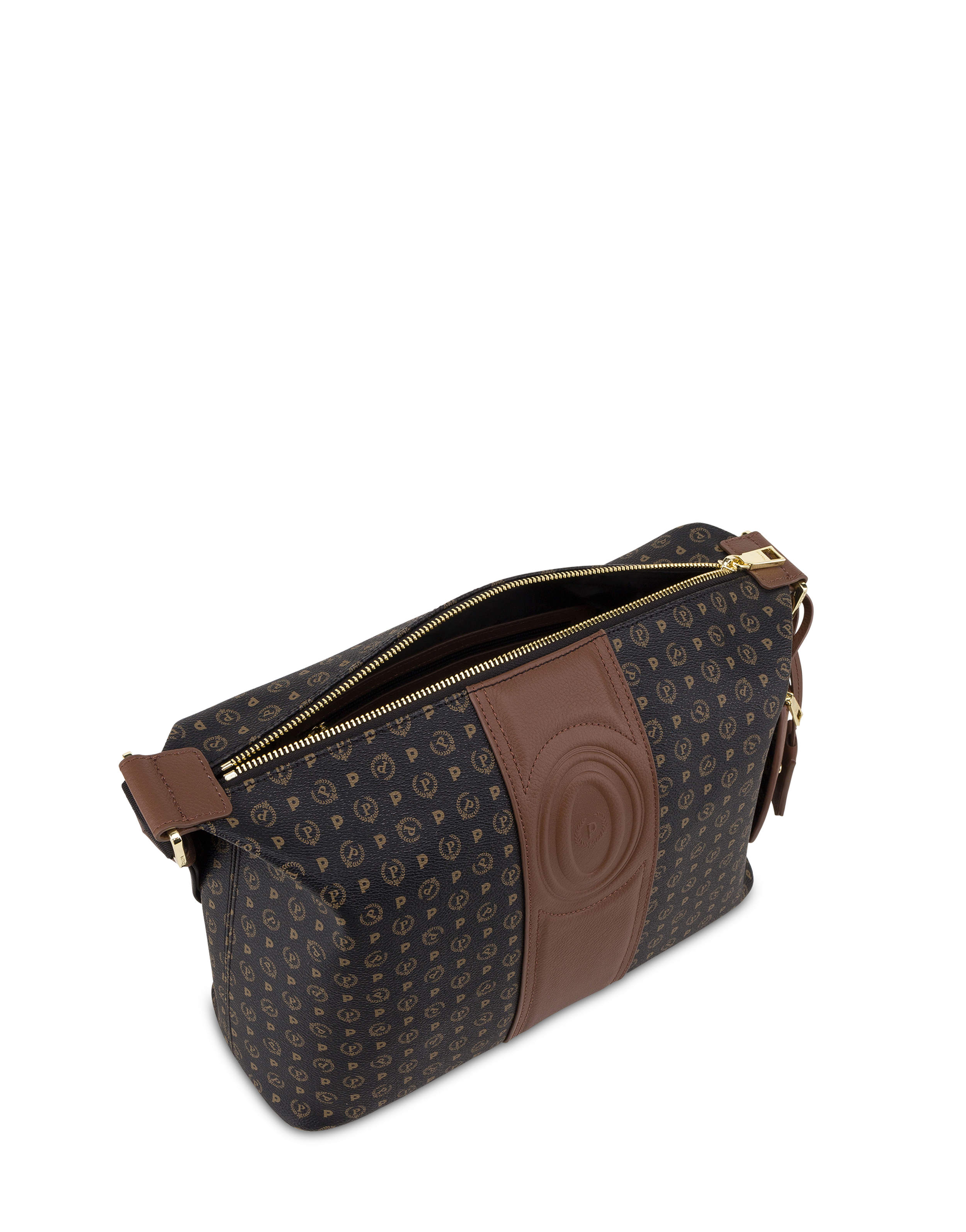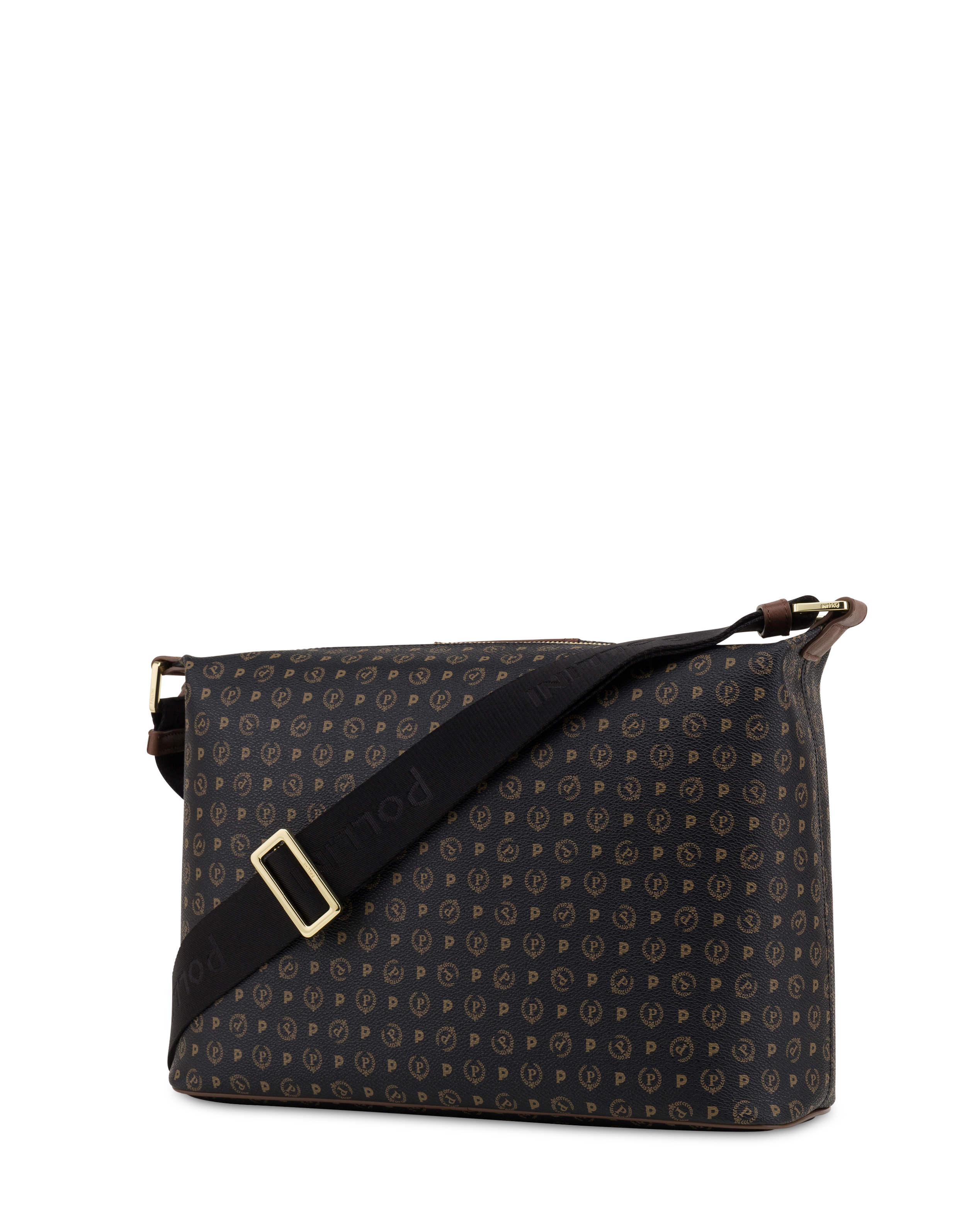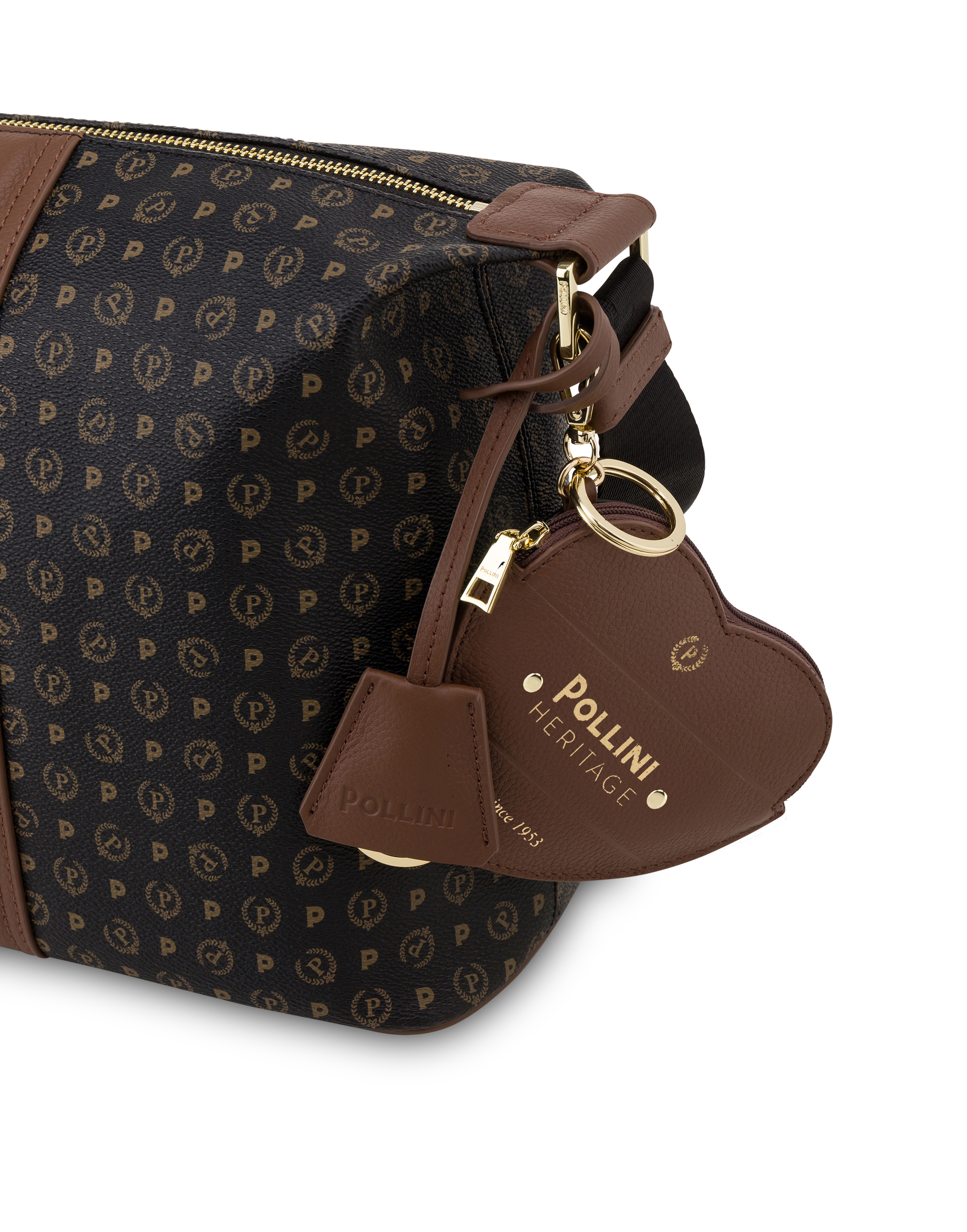 Umhängetasche aus der exklusiven Capsule-Kollektion Heritage. Das ikonische Pollini-Logo wird anlässlich des 70-jährigen Bestehens überarbeitet. Das klassische P-Lorbeer-Logo ist auf einem Lederband eingebrannt und erzeugt einen raffinierten dreidimensionalen Effekt. Herzförmiger Portemonnaie-Charm. Schultergurt aus Nylon-Jacquard mit Logo für doppelte Tragbarkeit: an der Schulter und am Handgelenk.