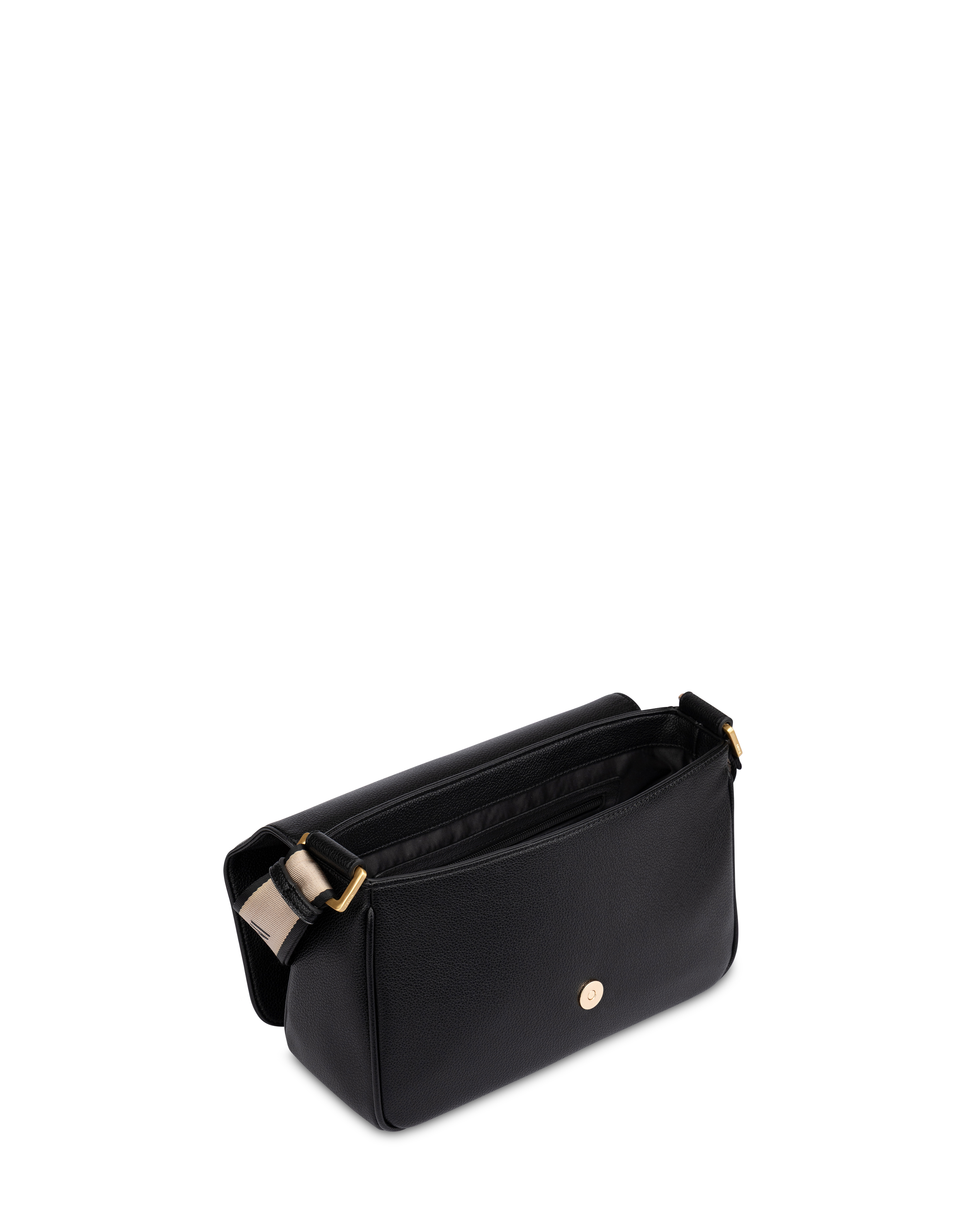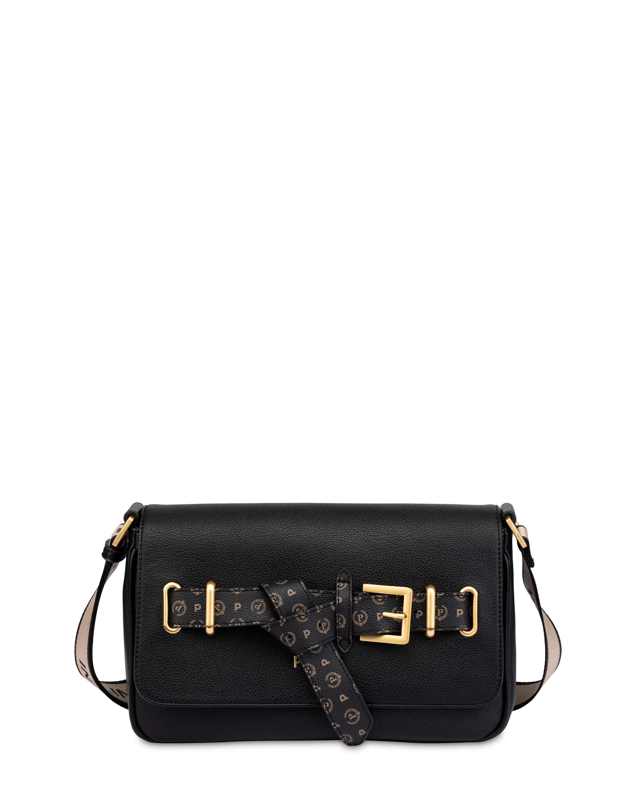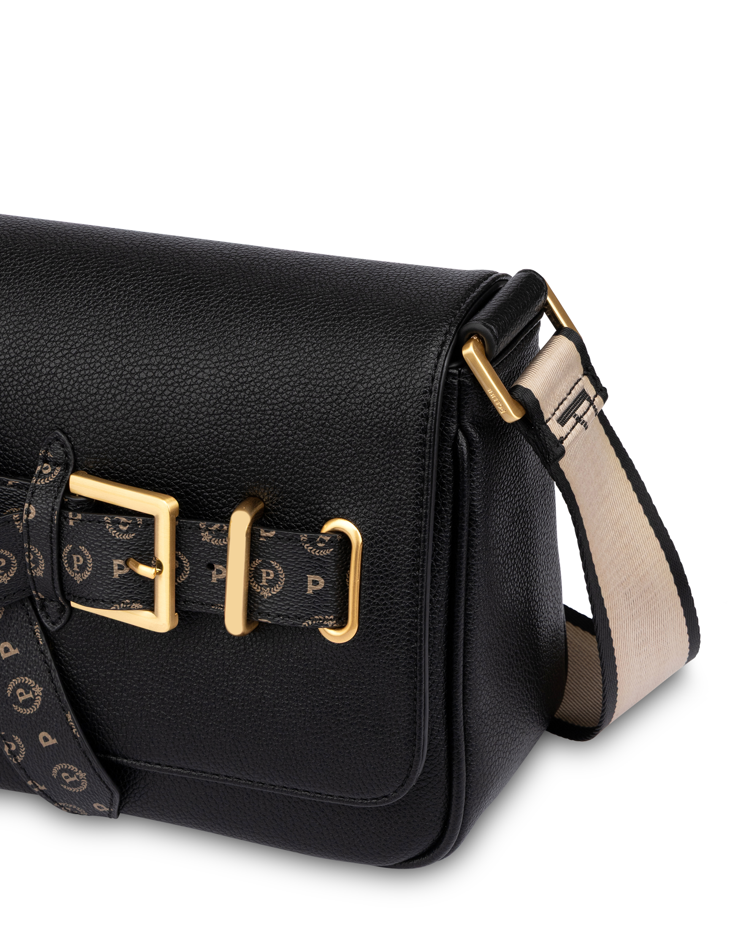 A perfect balance between functionality and contemporary style: the Belt Small Shoulder Bag features a decorative belt with the Heritage motif, an iconic detail that enhances its personality. The brushed gold-plated metal finishes add a luminous and elegant accent. Compact and refined, it is completed by an adjustable shoulder strap, a magnetic closure, and a lined interior with a zip pocket, for functional elegance on any occasion.
