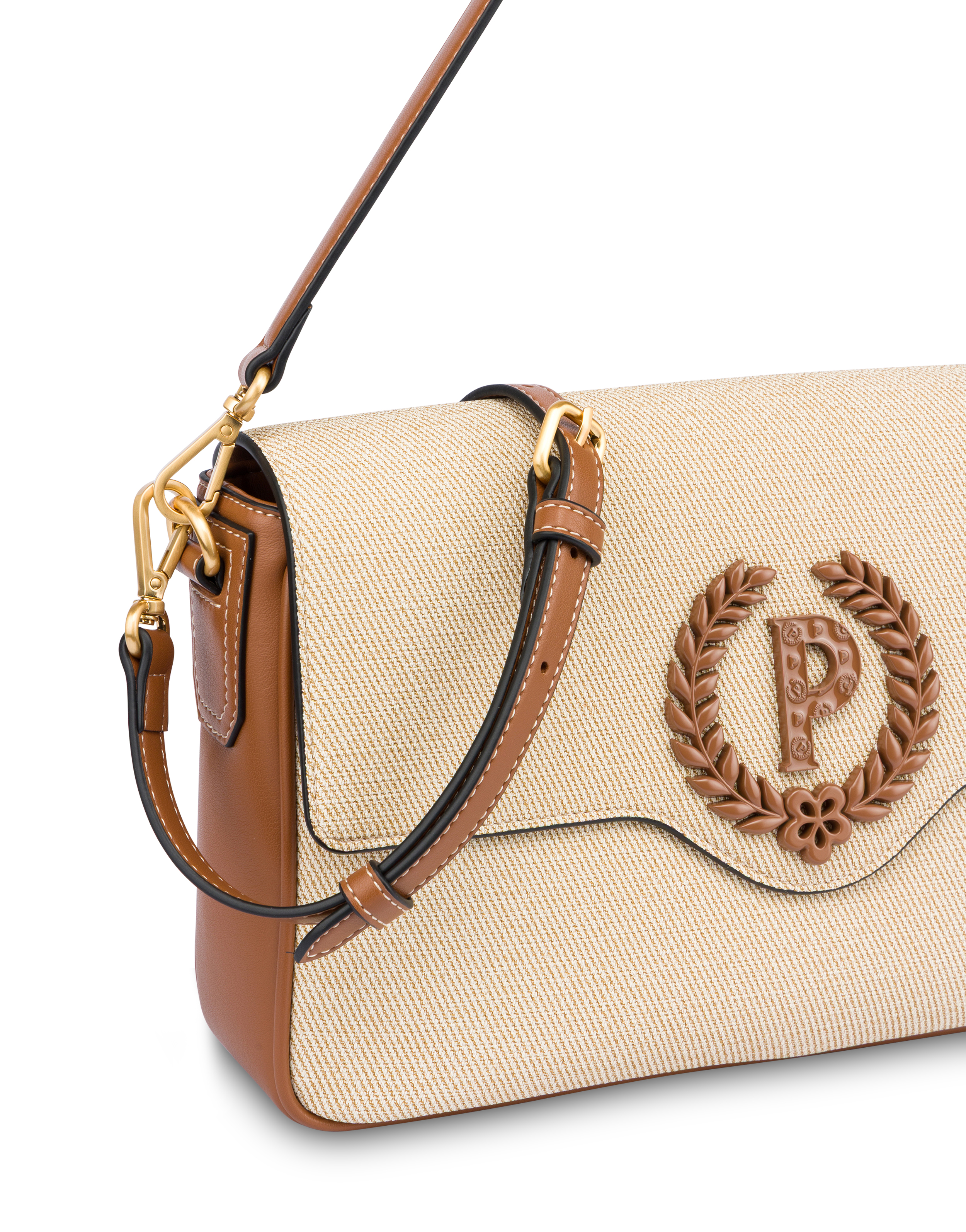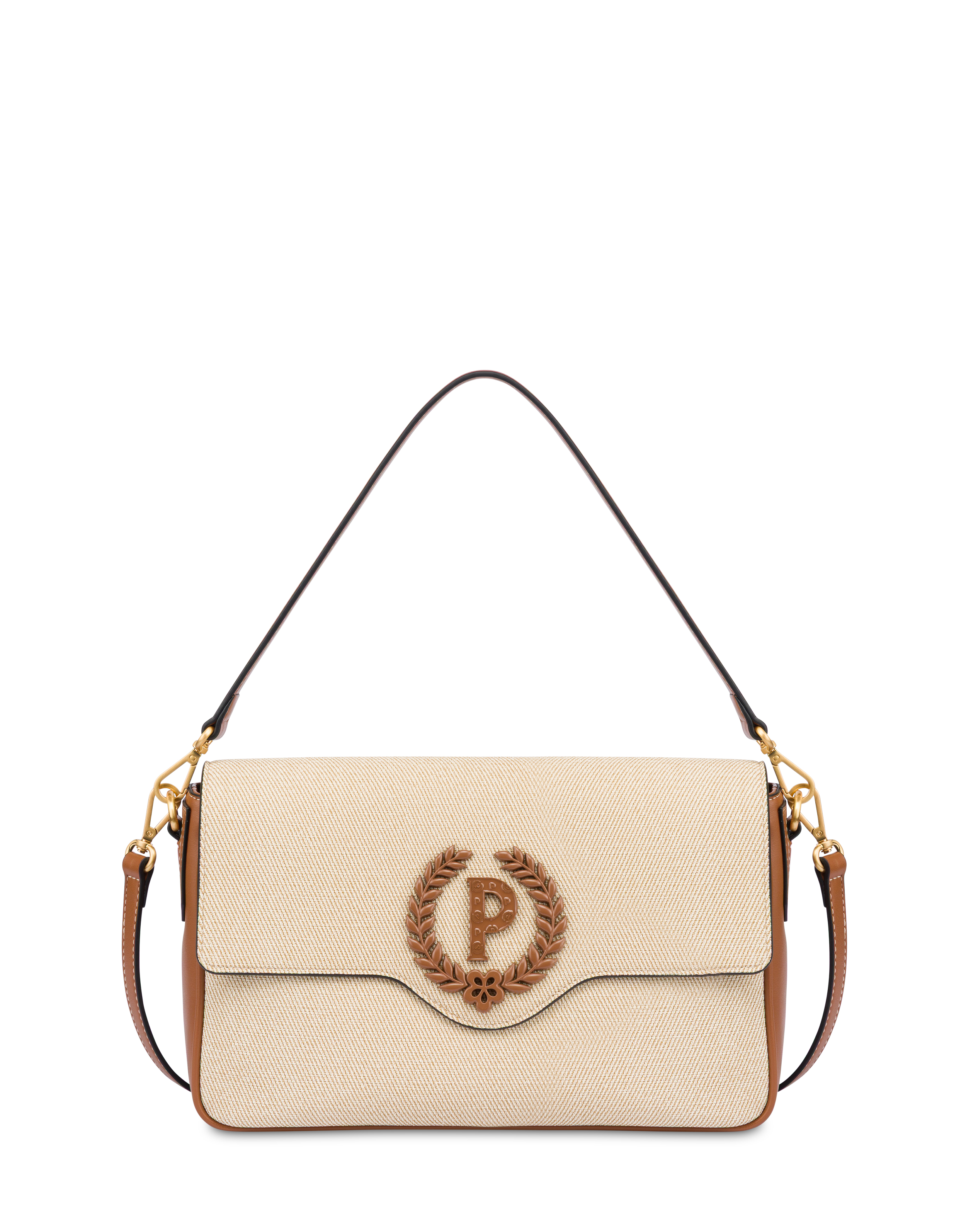 The iconic Candy Bag is updated as a Medium version, with a softer and more deconstructed design. Featuring a structured shape enhanced with piping, it has a removable leather shoulder strap and a second crossbody strap that provide practical and versatile dual portability. The magnetic closure ensures quick and secure access, while the interior, organized with a zipper and small pocket, combines capacity and functionality. The design is completed by the discreet and distinctive Pollini 'P' logo.