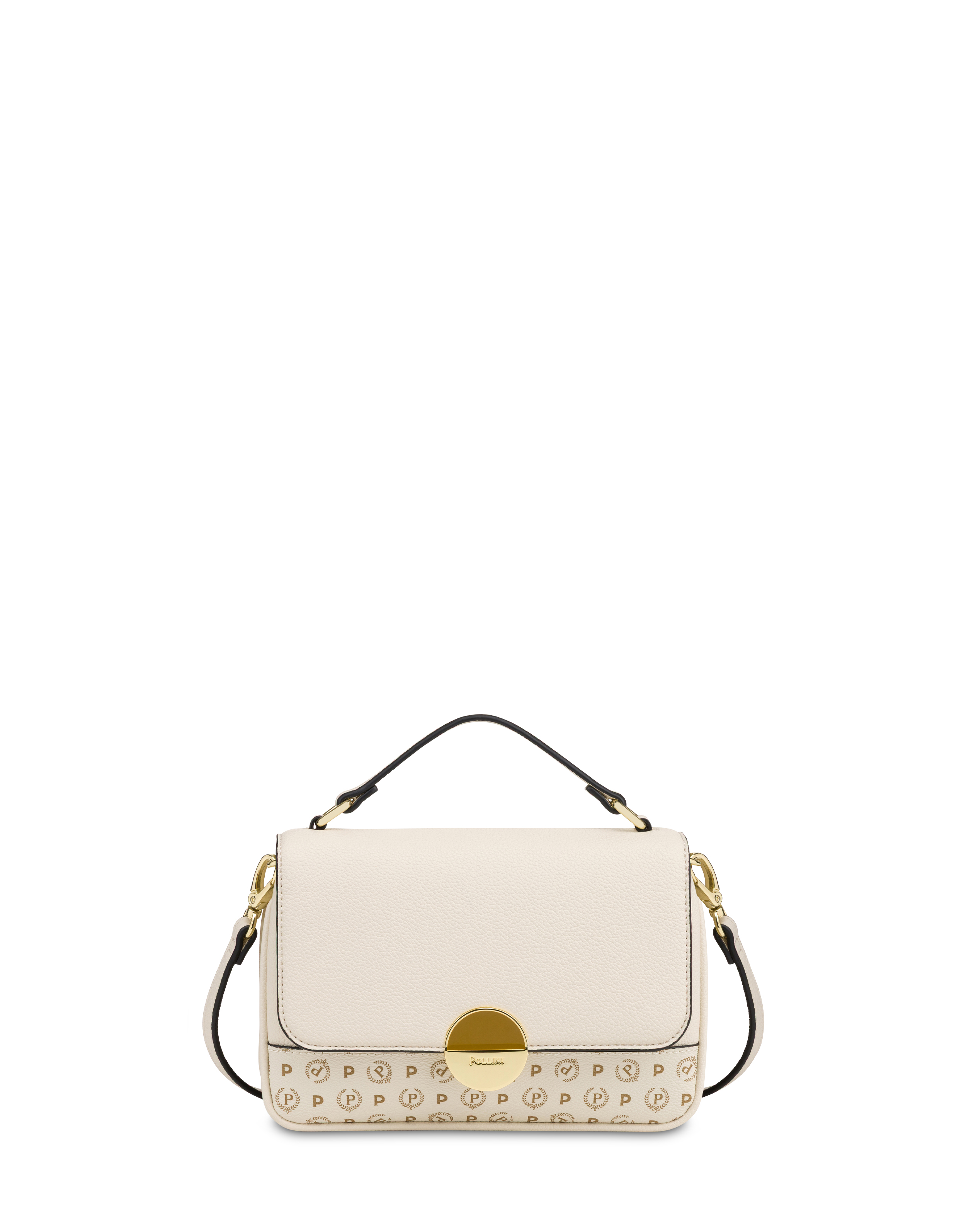 The new version of the Wallet on Chain, featuring a short handle, ideal for carrying by hand, and also equipped with a practical adjustable shoulder strap for greater versatility. The materials combine the 'Heritage Pollini' logo monogram with an elegant monochrome grain, while the partially enamelled logoed closure adds a distinctive detail. Inside, dedicated card compartments ensure order and practicality, making this small bag perfect for both daily use and evening occasions.
