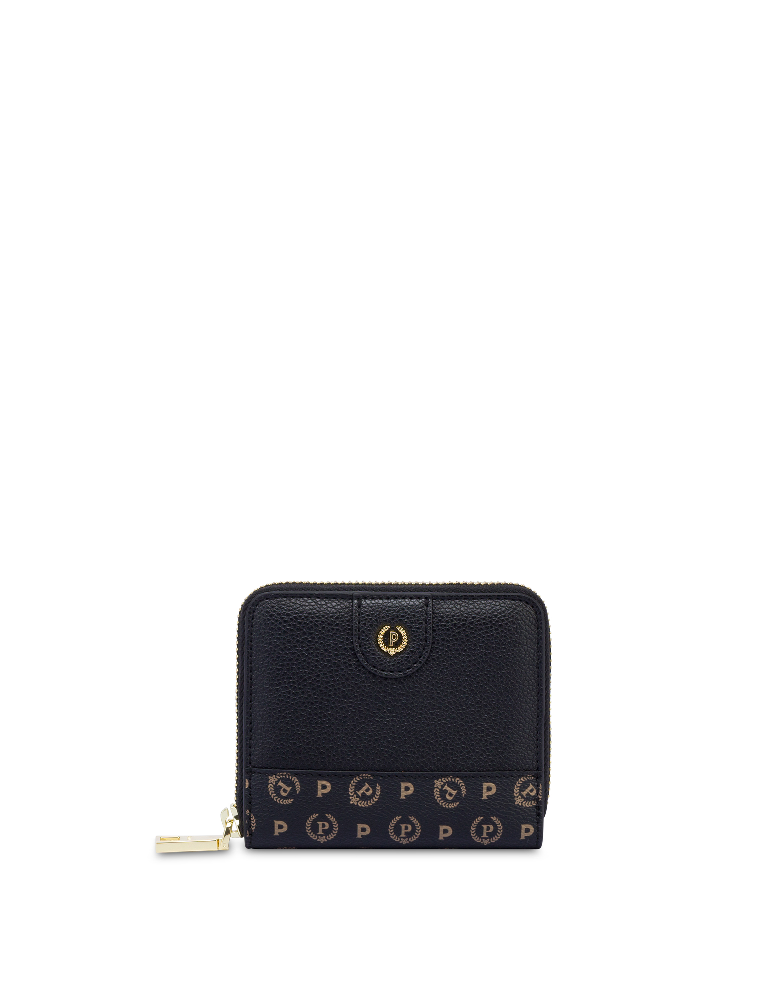 Elegance and functionality come together in this Zip Around wallet, which stands out for its sophisticated design embellished by a horizontal band with the 'Heritage' motif. The gold zip closure ensures security and style. The interior is well organized with a coin pocket, 4 card slots, a compartment for banknotes, and spaces for essentials. The iconic gold metal 'P' laurel logo adds a distinctive and sophisticated touch.
