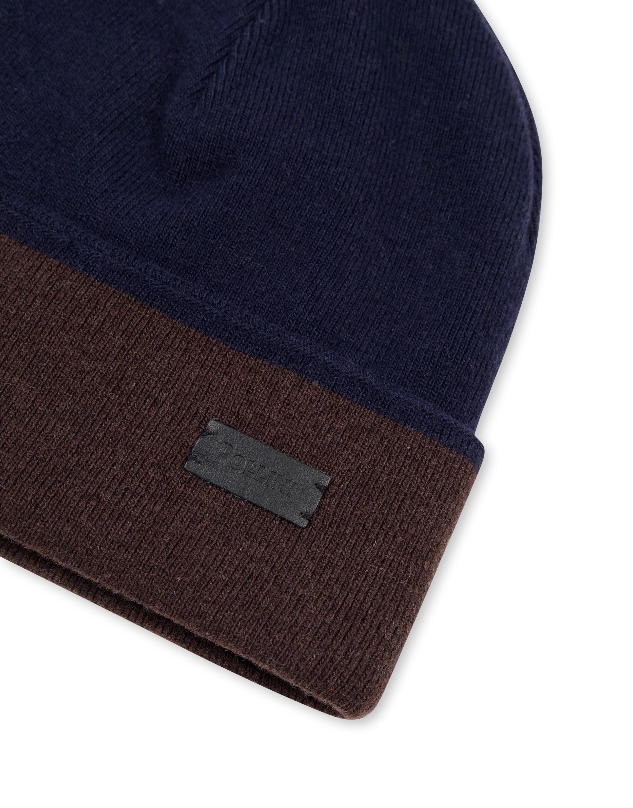 Cappello in misto lana bicolor. Il dritto e il rovescio sono a colore a contrasto. Etichetta logata in pelle sul bordo.