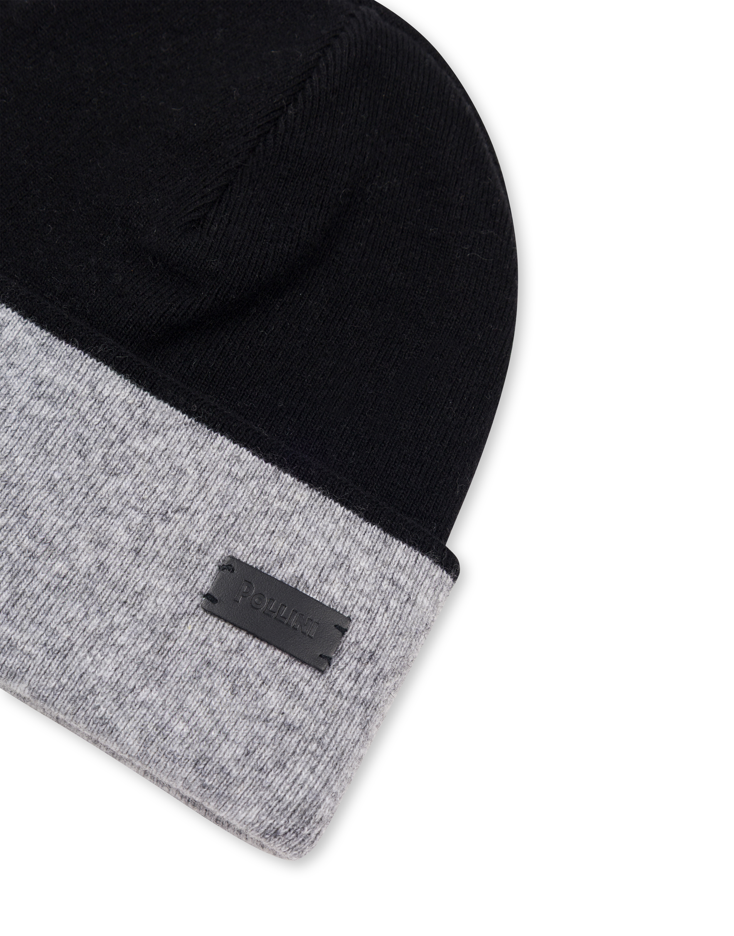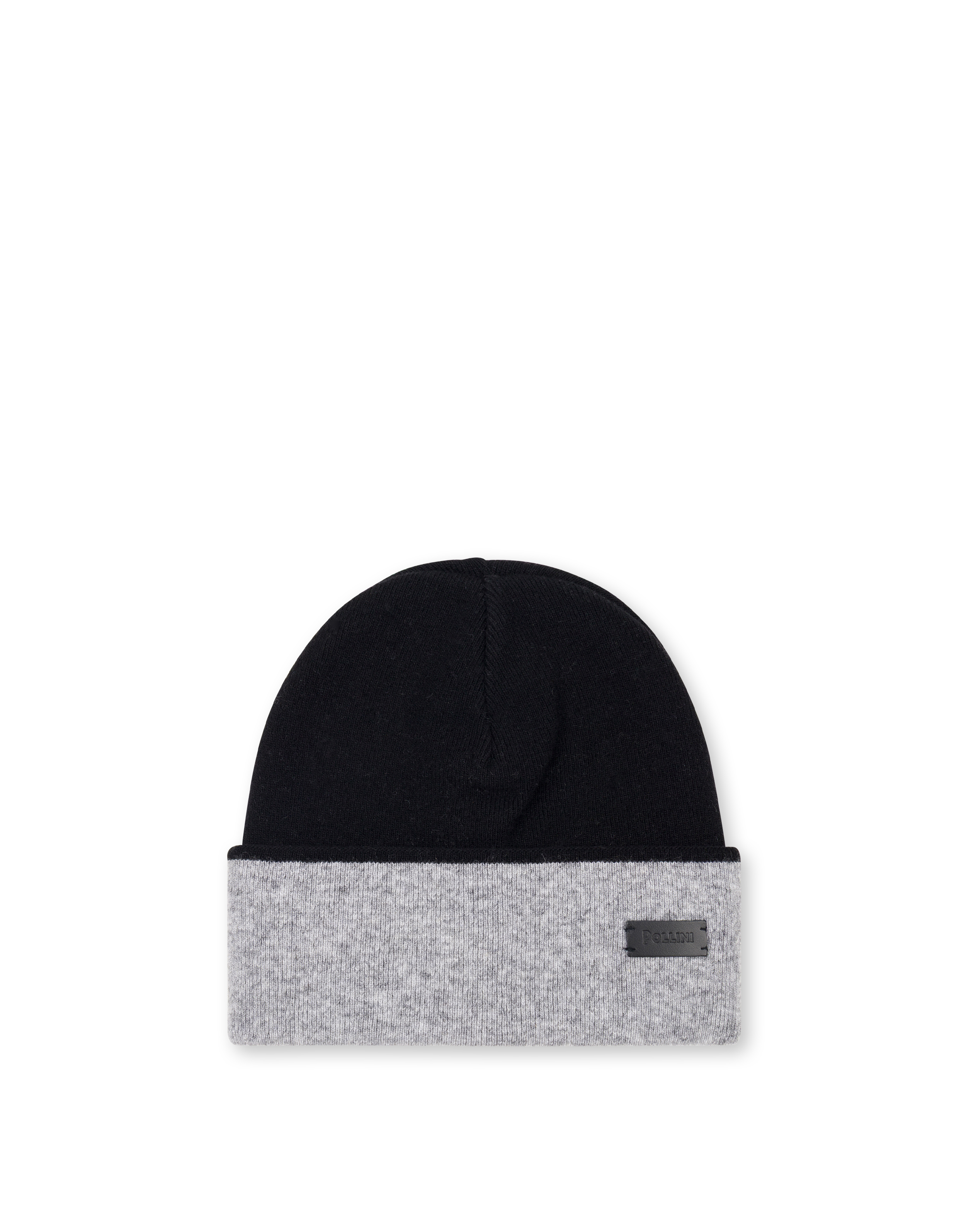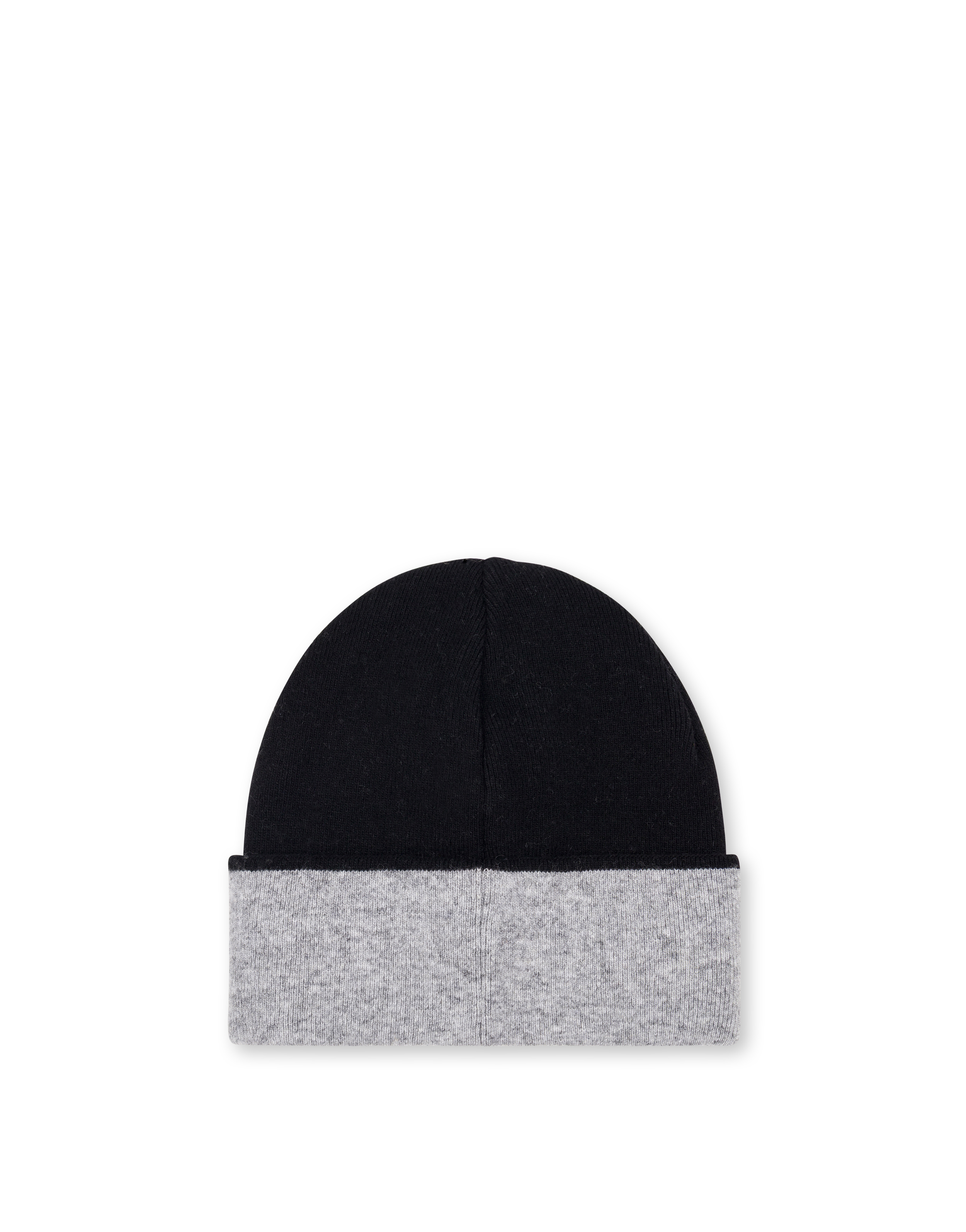 Cappello in misto lana bicolor. Il dritto e il rovescio sono a colore a contrasto. Etichetta logata in pelle sul bordo.