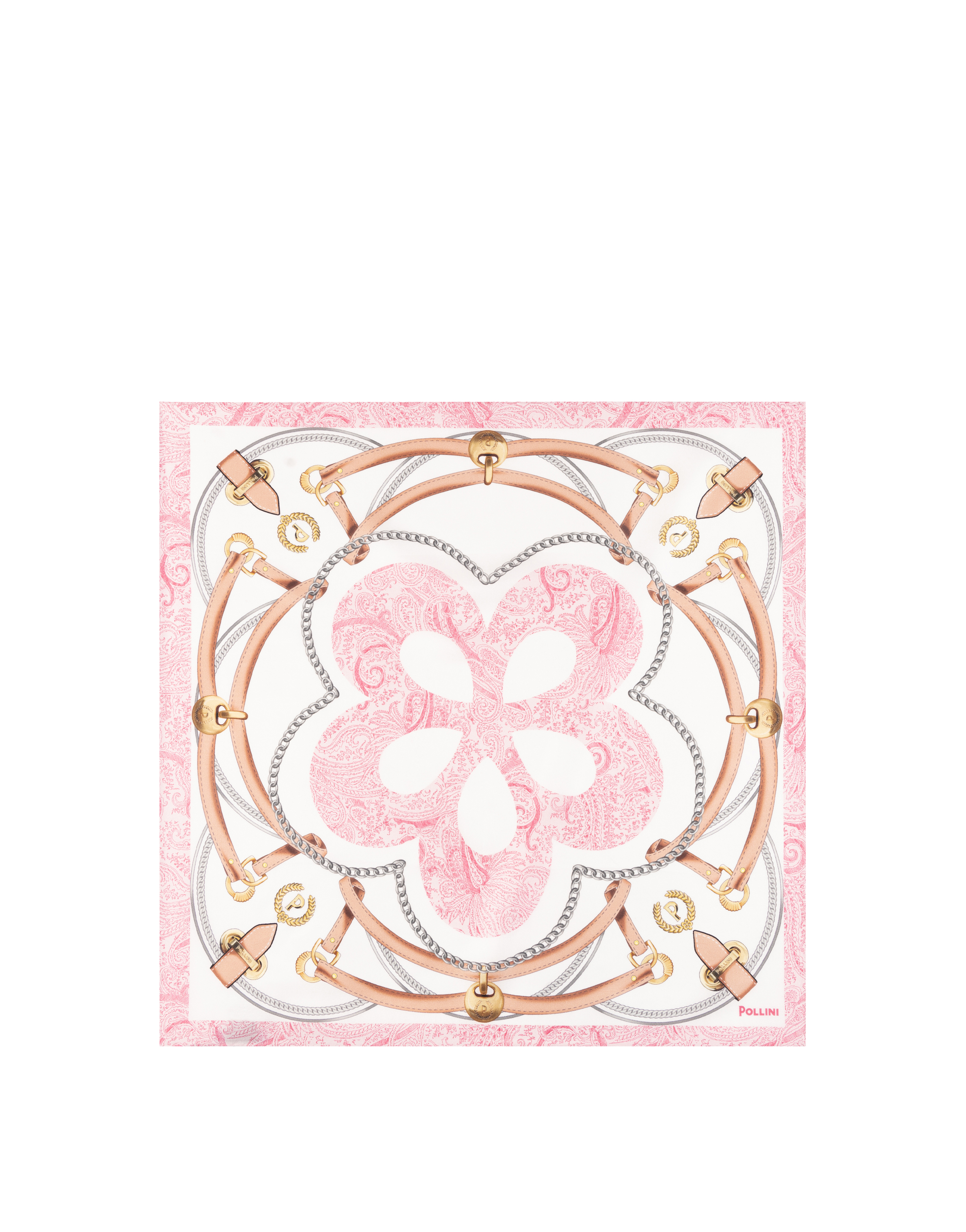 Foulard In Seta Con Stampa Cinghie E Staffe Beige Rosa