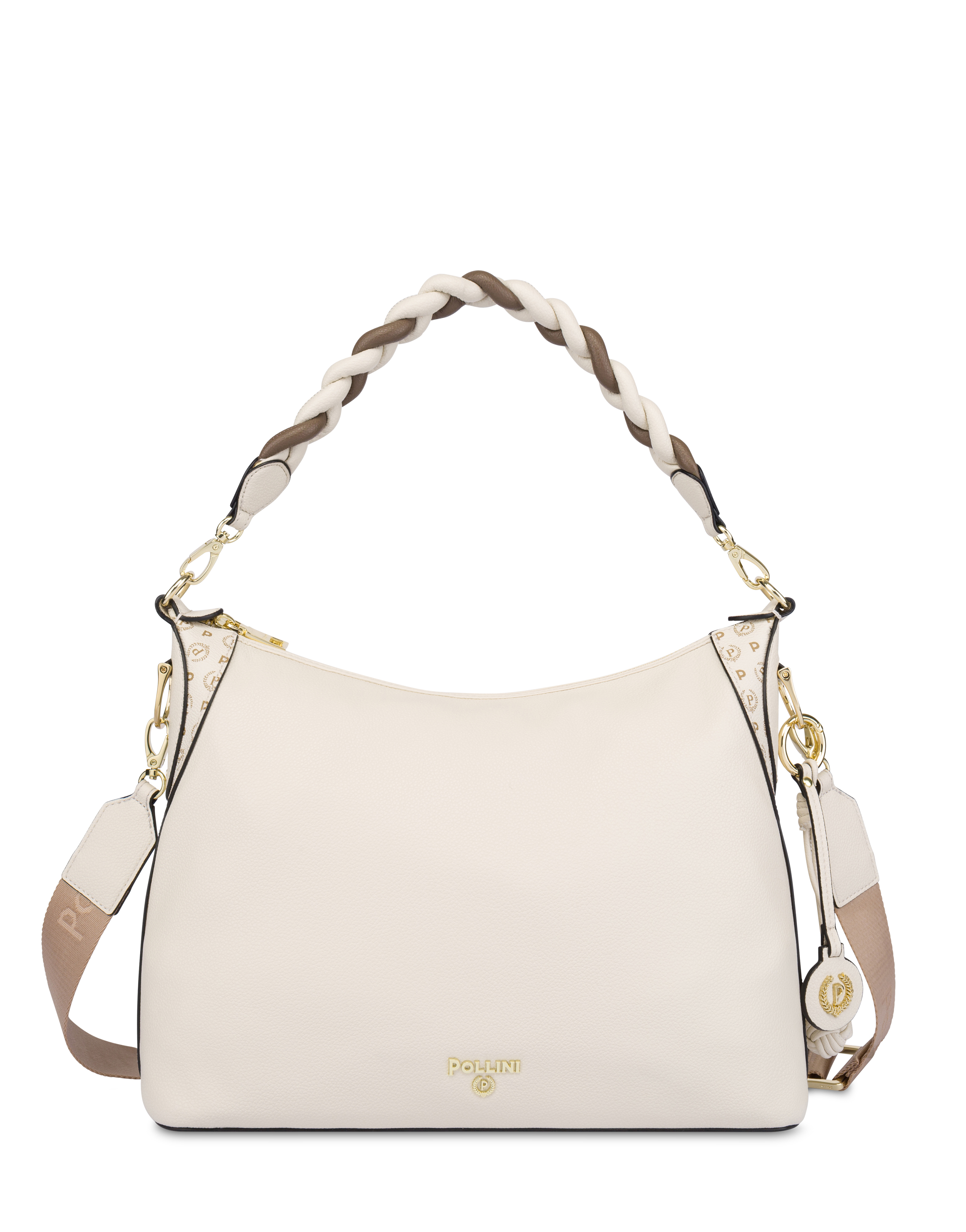 La Medium Double Handle Bag Charisma si distingue per la sua silhouette morbida, una perfetta sintesi di stile e funzionalità. Impreziosita da manici intrecciati, tracolla regolabile in jacquard e metalleria con finitura nickel, è un accessorio versatile e sofisticato. Il charm con logo “P Alloro” firma con carattere questa borsa, ideale per accompagnare ogni giorno con classe.