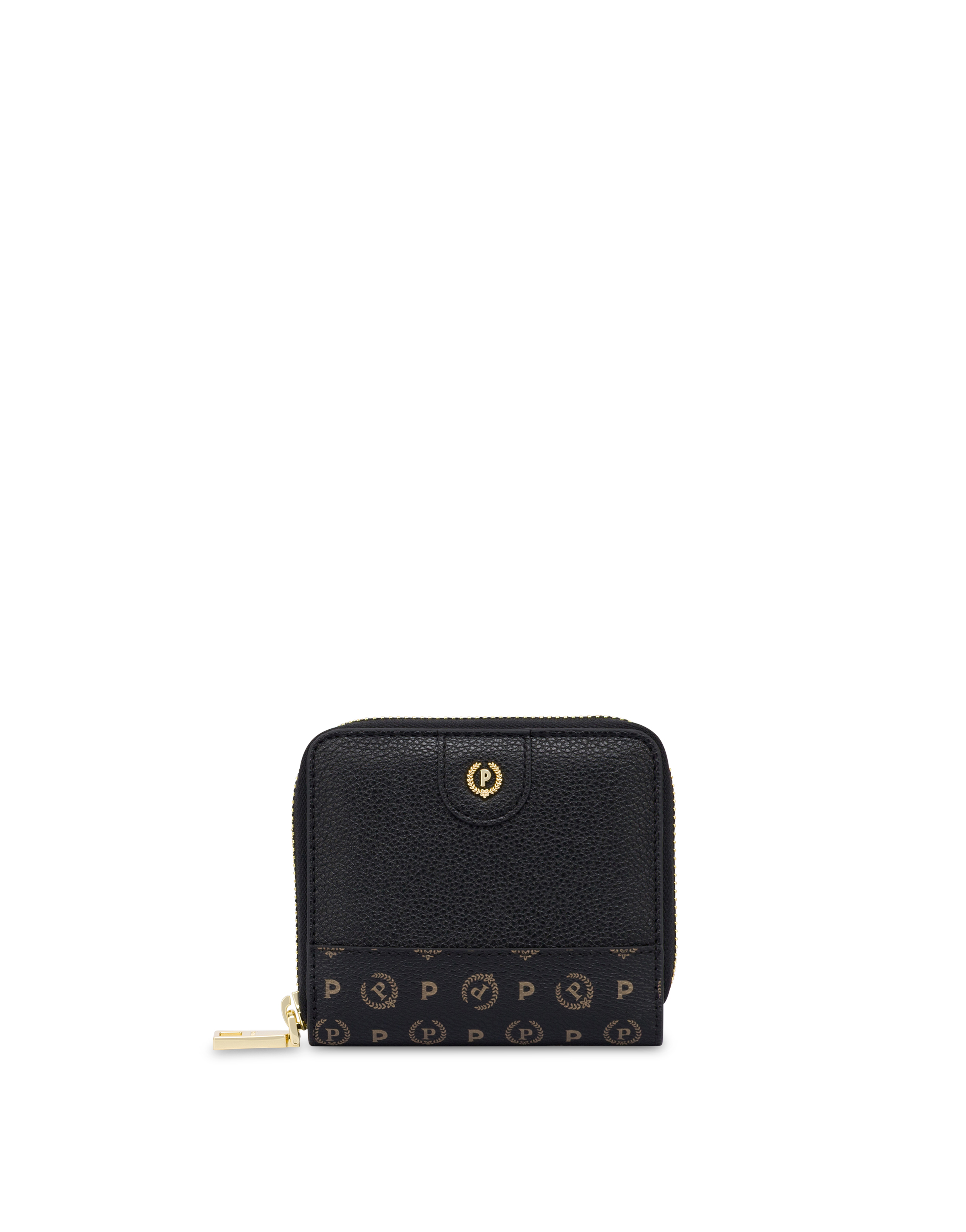 Portafoglio pratico, piccolo e compratto. Presente la zip e due materiali: stampa pollini logata e soffice materiale monocolore. Presente il piccolo logo in metallo. Pratica organizzazione interna con vani per carte, monete, banconote e documenti. Tasca con clip dedicata alle monete.