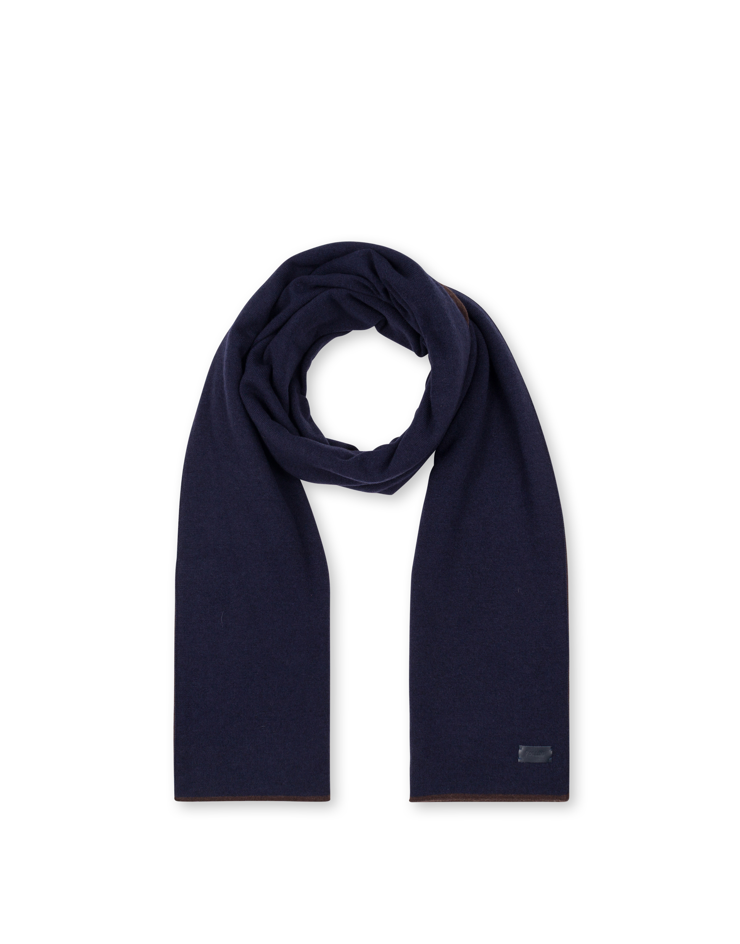 Sciarpa in misto lana bicolore. Il dritto e il rovescio sono in tonalità a contrasto. Etichetta logata in pelle sul bordo.