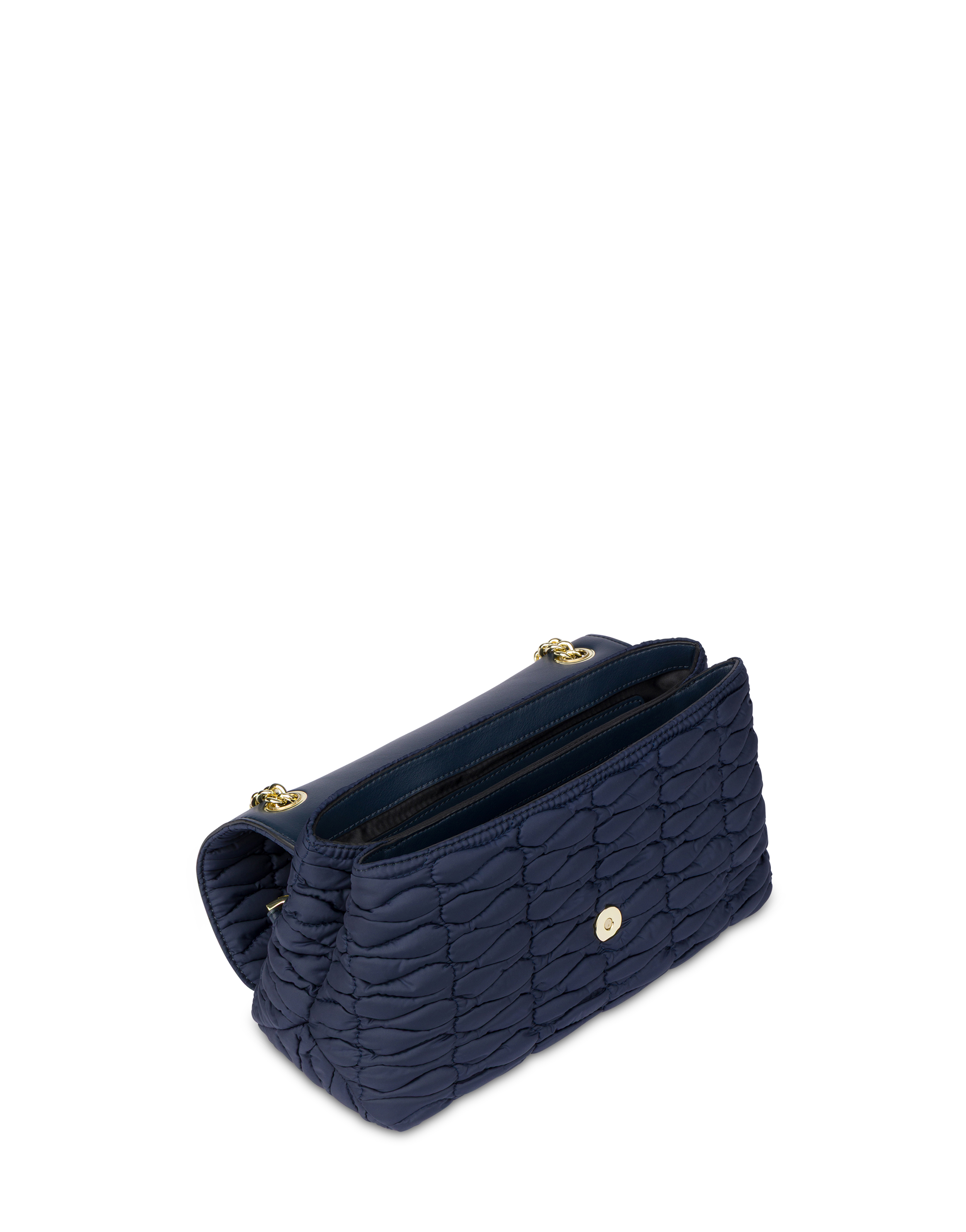 Un equilibrio perfetto tra eleganza urbana e funzionalità quotidiana: la Shoulder Bag Waltzer Night di Pollini, proposta in versione nylon trapuntato, è un must-have della collezione Fall/Winter 2025. Il design strutturato incontra la leggerezza del materiale tecnico, mentre la lavorazione trapuntata aggiunge un tocco di raffinatezza contemporanea. Completano il modello una tracolla abbinata a una catena dorata in galvanica light gold, per un effetto luminoso.