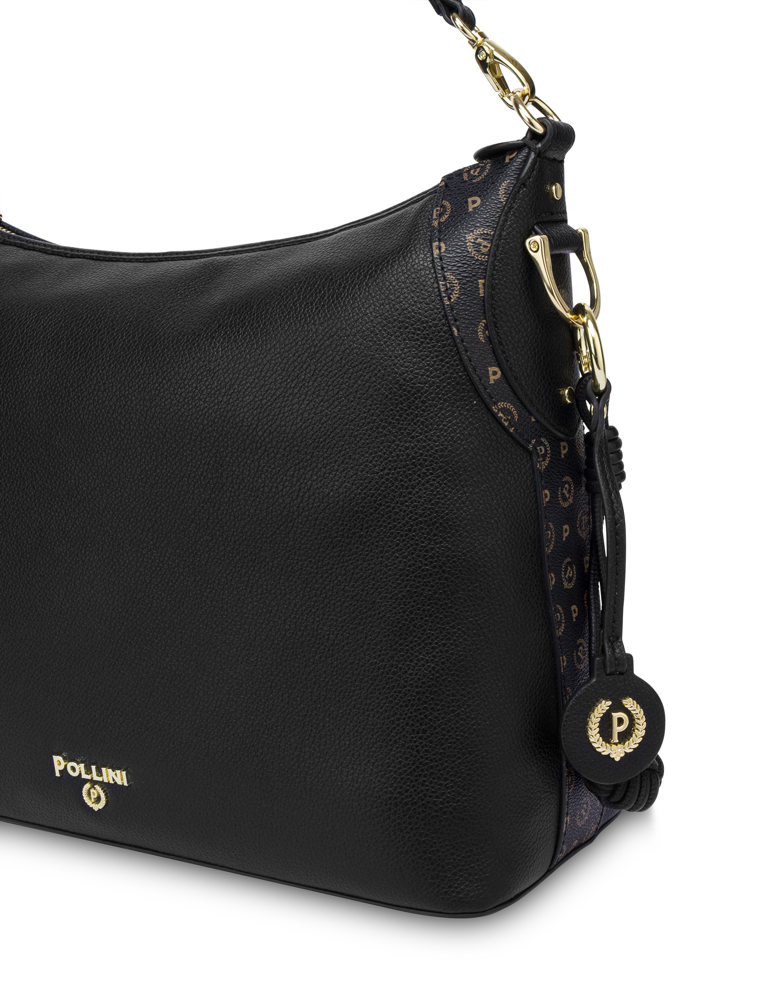 Dallo spirito contemporaneo e dal design ricercato, la Small Double Handle Bag Charisma è il nuovo modello Pollini pensato per adattarsi a ogni momento della giornata. La sua struttura morbida è valorizzata da angoli effetto 3D e da un mix materico che unisce nylon e l’iconico motivo Heritage, completato da dettagli in galvanica nickel. La tracolla in jacquard logato e il manico intrecciato, amovibile, esprimono uno stile unico e distintivo. A definire l’identità della borsa, l’inconfondibile charm “P Alloro'.
