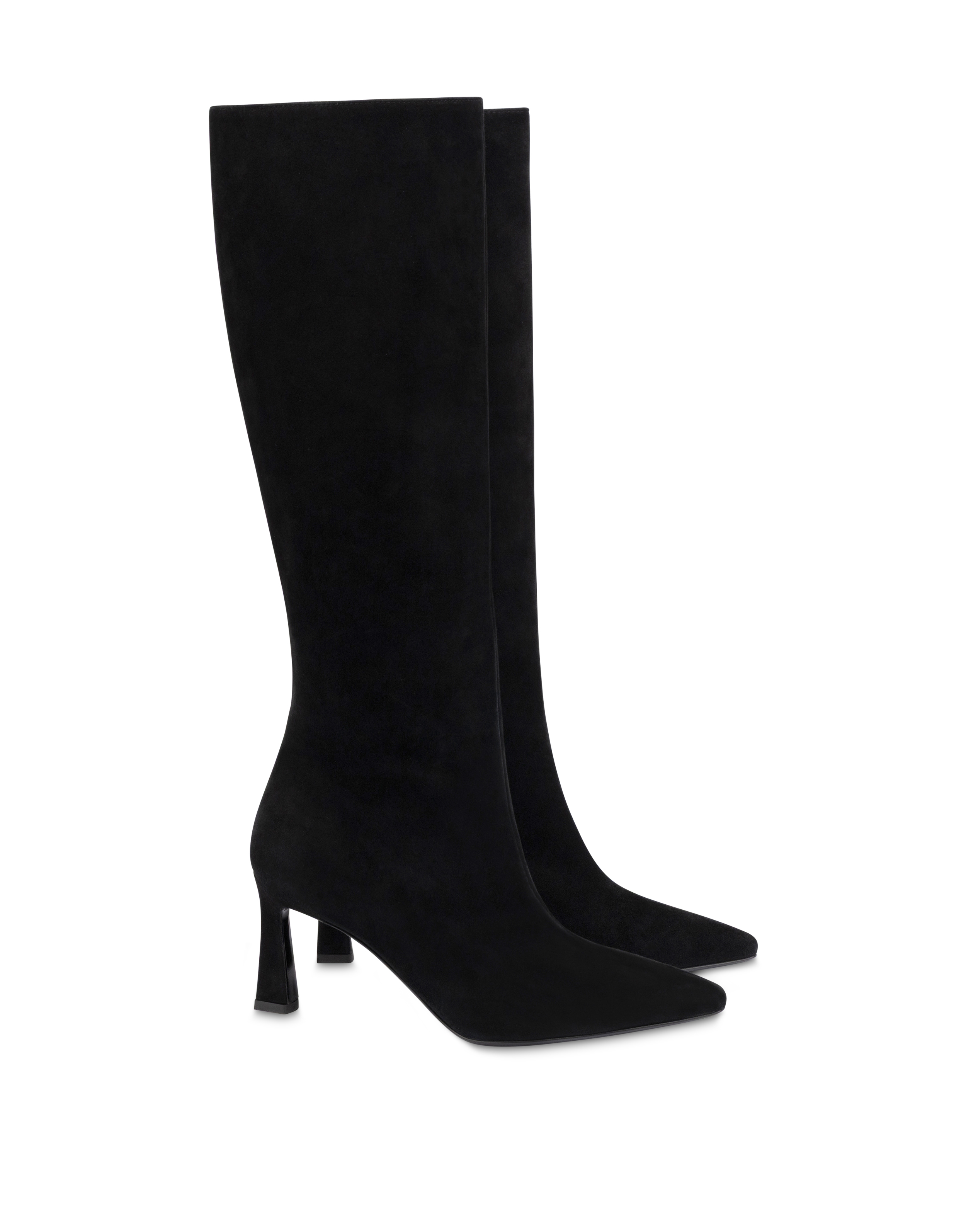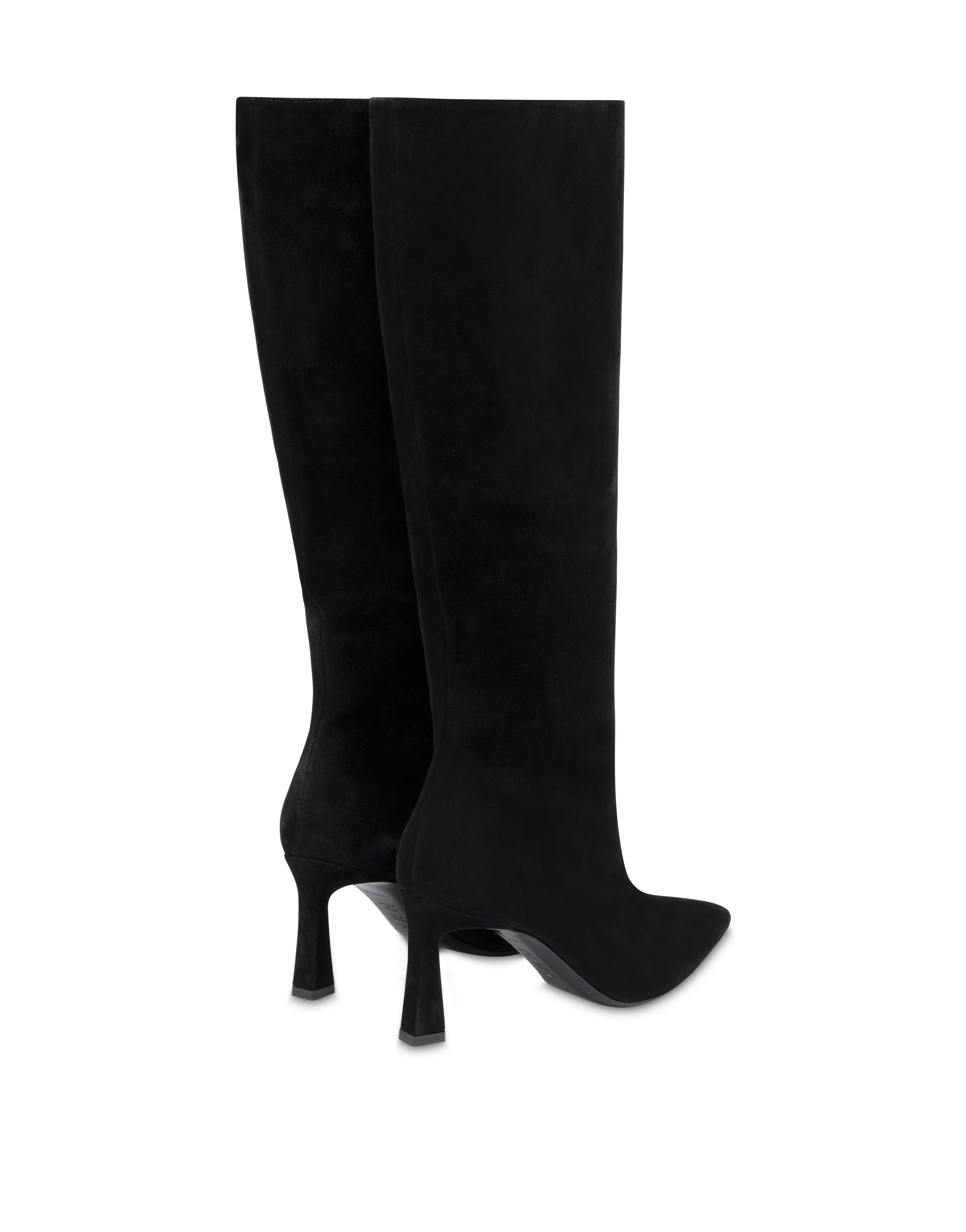 Lo stivale Sissi unisce eleganza e carattere in un design ricercato. Realizzato in pregiato camoscio, si distingue per la sua texture vellutata e il suo stile sofisticato.La fodera in pelle offre traspirabilità e una calzata confortevole. La suola in cuoio con isola in gomma assicura un'ottima aderenza e durata. La punta a scalpello conferisce una linea moderna e decisa, mentre il tacco a colonna aggiunge stabilità ed un tocco di raffinatezza.Un pezzo distintivo, perfetto per arricchire ogni look con un tocco di personalità e classe